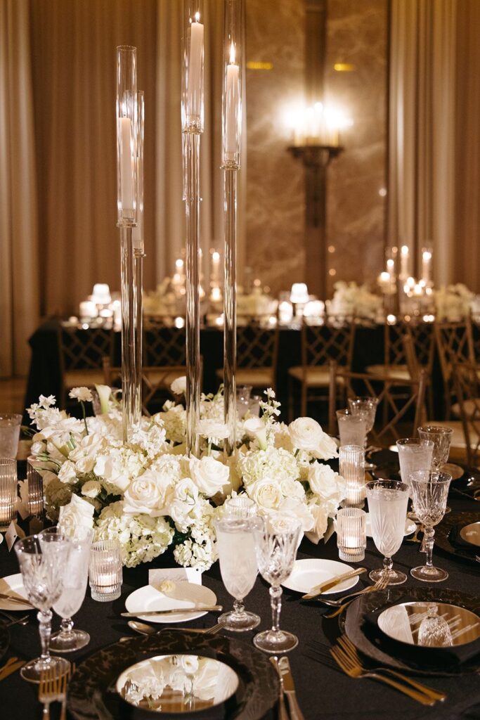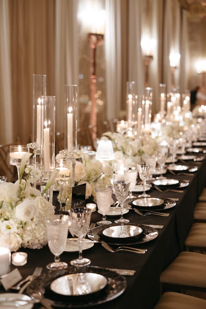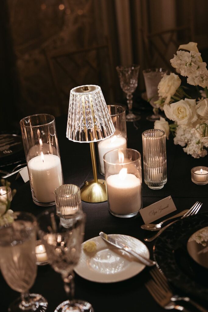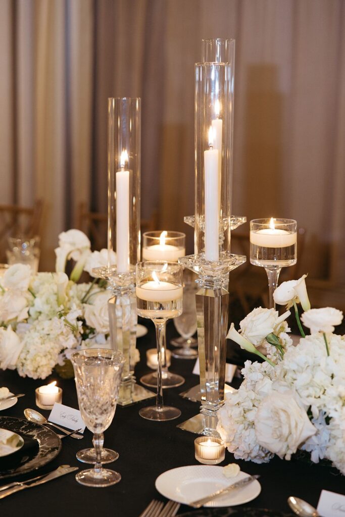 The color palette was intentionally simple: classic black and white. The real star of the design? Candles. And lots of them.