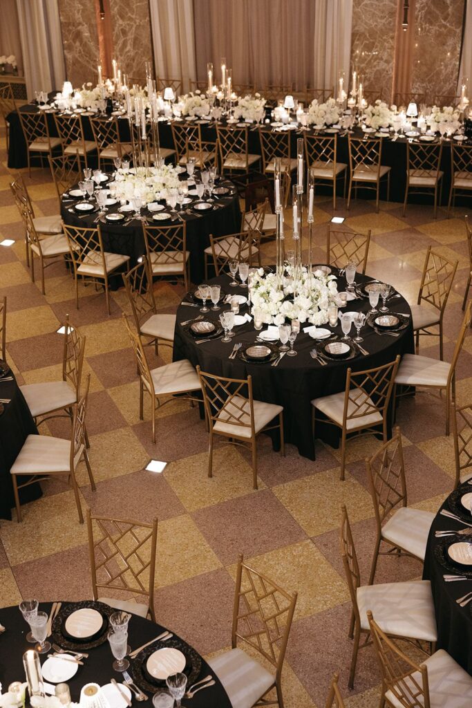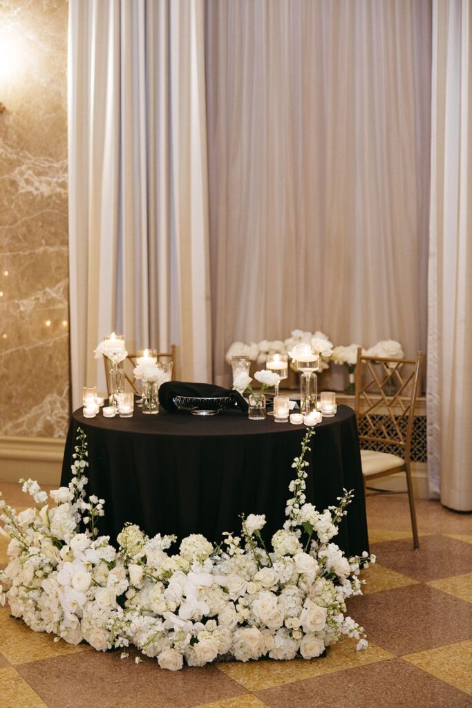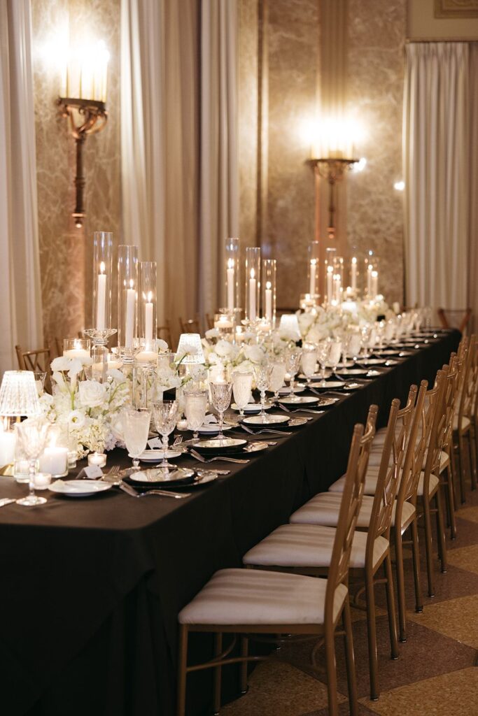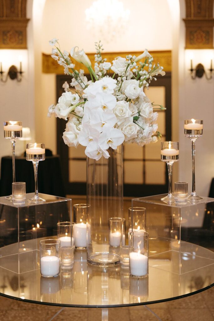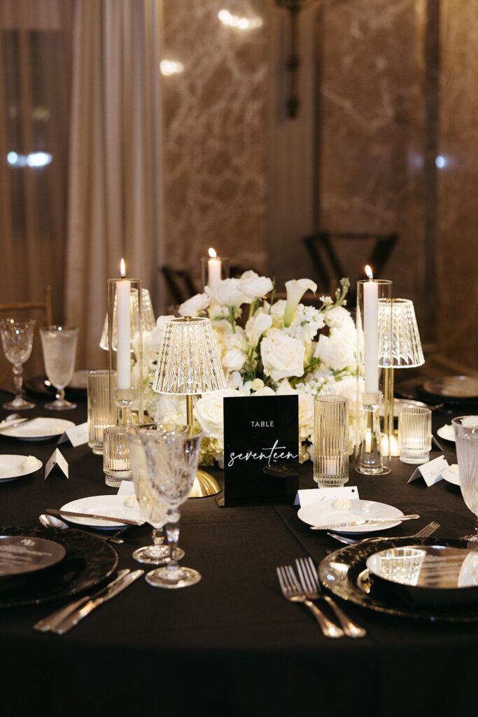 The color palette was intentionally simple: classic black and white. The real star of the design? Candles. And lots of them.