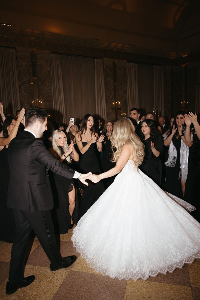 The reception followed an “East Coast” style flow, with dancing woven between dinner courses, toasts, and special dances. It kept the energy high and the evening feeling dynamic. The dance floor came alive during the Horah, when Hannah and Dylan were lifted in chairs, surrounded by cheering guests and pure joy.